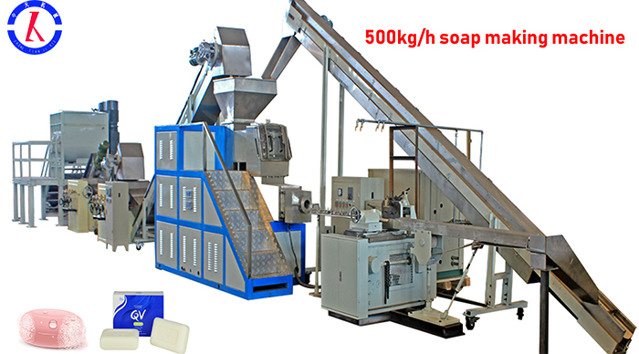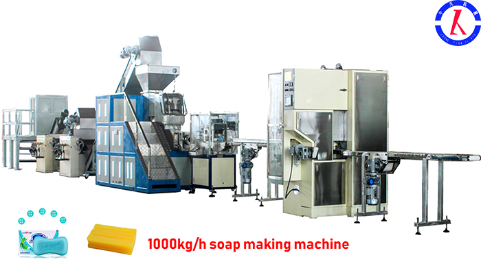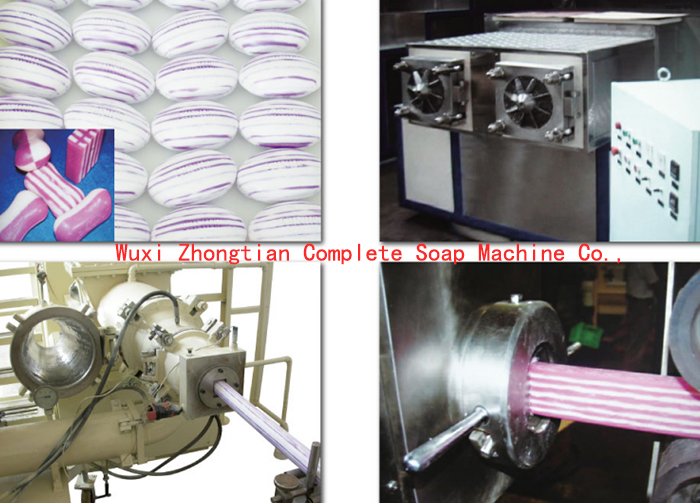 制皂成型生產(chǎn)線由皂粒開始,經(jīng)過混合設備、研磨設備、真空出條,最后切塊,打印等工序。最終皂成品細膩緊密,不開裂,皂體光亮等特點。